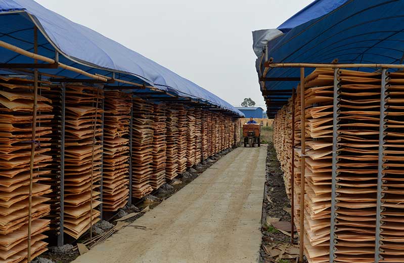 4:將晾曬好的單板存入倉庫備用,我們擁有大型的單板成品材料倉庫。